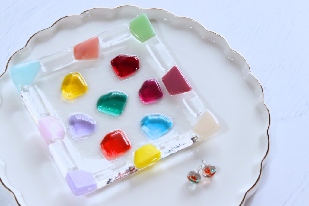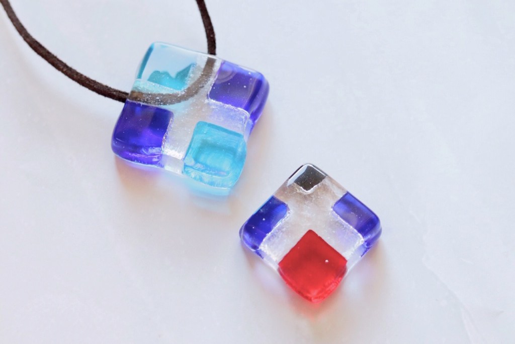 ガラスフュージングを初めて体験される方向けの体験レッスン。ガラスや金具などの材料費、焼成費等を全て含んだ料金です。各種アクセサリー・箸置き・豆皿・お香立てから2個まで制作できます。お友達や親子2名様まで一緒に体験いただけます。